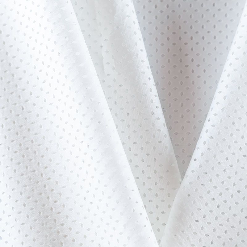 Итальянский однотонный гладкокрашенный плательно-рубашечный хлопок декорирован лазерной ажурной перфорацией. Ткань лёгкая, прозрачная за счет структуры, поверхность матовая, гладкая, приятная к телу, хорошо драпируется. Прекрасно подойдет для пошива блузы, платья-рубашки, летнего сарафана, туники, топа, юбки, шорт на подкладе.