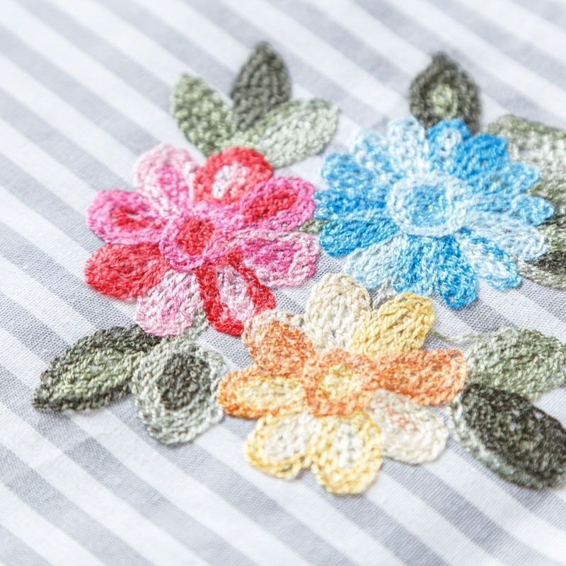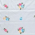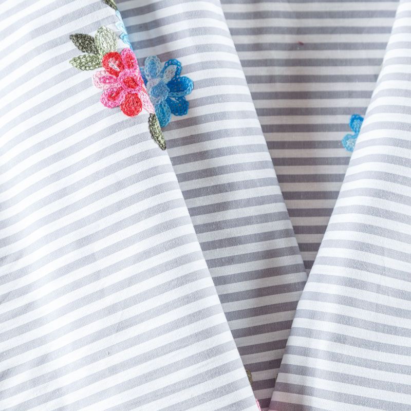 Плательно-блузочный хлопок в серо-белую полоску декорирован яркой цветочной вышивкой. Полотно средней плотности, слегка просвечивает, очень нежное и пластичное, держит форму. Материал отлично драпируется, формируя мягкие складки. Подойдет для прямых, полуприлегающих, расклешенных моделей платьев, сарафанов, а также юбки, туники, платье-рубашки.