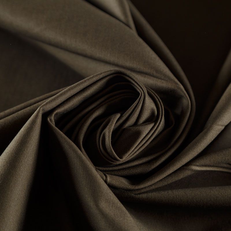 Коттон средней плотности оттенка темного хаки, мягкий, приятный на ощупь, не тянется, держит форму, смотрится красиво. Подойдет для пошива костюма, жакета, юбки, платья и других изделий на теплый и прохладный сезоны.