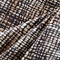 Итальянский коттон бежевого цвета с абстрактным принтом. Поверхность гладкая, матовая, ткань средней плотности,  не толстая, хорошо держит форму, тянется за счет эластана в составе. Подойдет для пошива костюма, жакета, юбки, платья, брюк или шорт.
