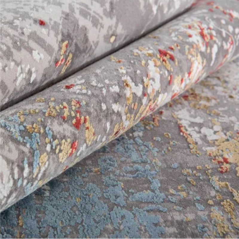 Ковер выполнен в актуальном абстрактном дизайне и свежих оттенках, которые сделают пространство визуально более лёгким. Ковер отличается мягкостью и гладкостью, но значительно прочный и износостойкий. Ворс хорошо удерживает тепло в холодную погоду, а в жару сохраняет приятную прохладу. Рекомендуется чистить ковер вручную, что придаёт ему дополнительную гладкость и лоск. Плотность – 2000000 пробивок на м2.
