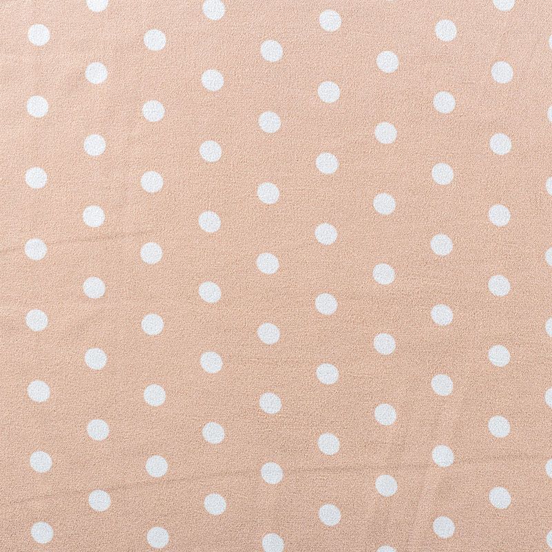 Плательный креп с принтом в горох. Ткань средней плотности, не толстая, пластичная, поверхность полотна матовая, с характерной мелкозернистой фактурой, прочная, хорошо драпирующаяся. Превосходно подойдет для пошива стильного костюма, юбки, платья, комбинезона, топа, брюк.