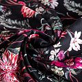Итальянский смесовый креп плательной плотности глубокого черного цвета с красивым цветочным принтом. Поверхность матовая и фактурная, ткань малосминаемая, тянется за счет эластана в составе, красиво драпируется, струится и дает объемную складку, не просвечивает.Идеально подойдет для шикарного платья, блузы, юбки, комбинезона, брюк свободного кроя.