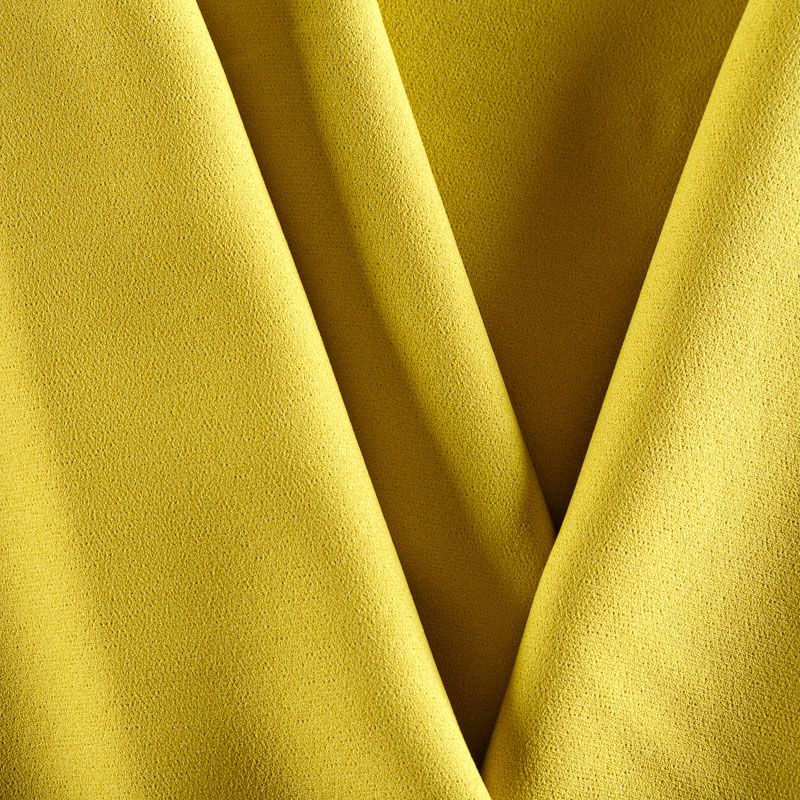 Итальянский вискозный креп костюмно-плательной плотности в сложном желто-зеленом оттенке, поверхность матовая, слегка зернистая. Ткань мягкая, пластичная, образует мягкие фалды, не просвечивает, тянется за счет эластана в составе. Подойдет для пошива весенне-осеннего костюма, платья, комбинезона, юбки, брюк