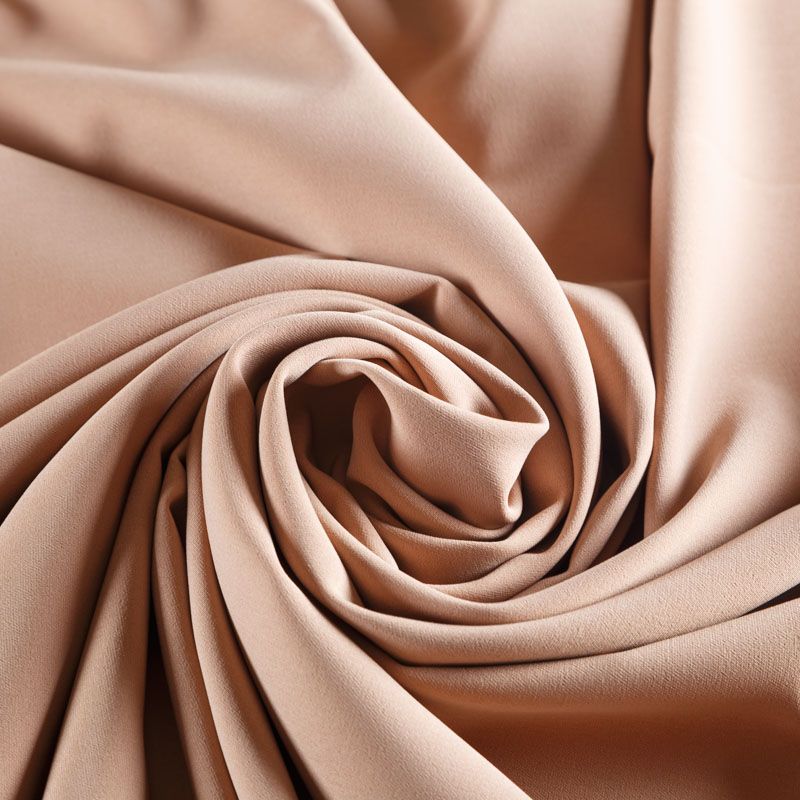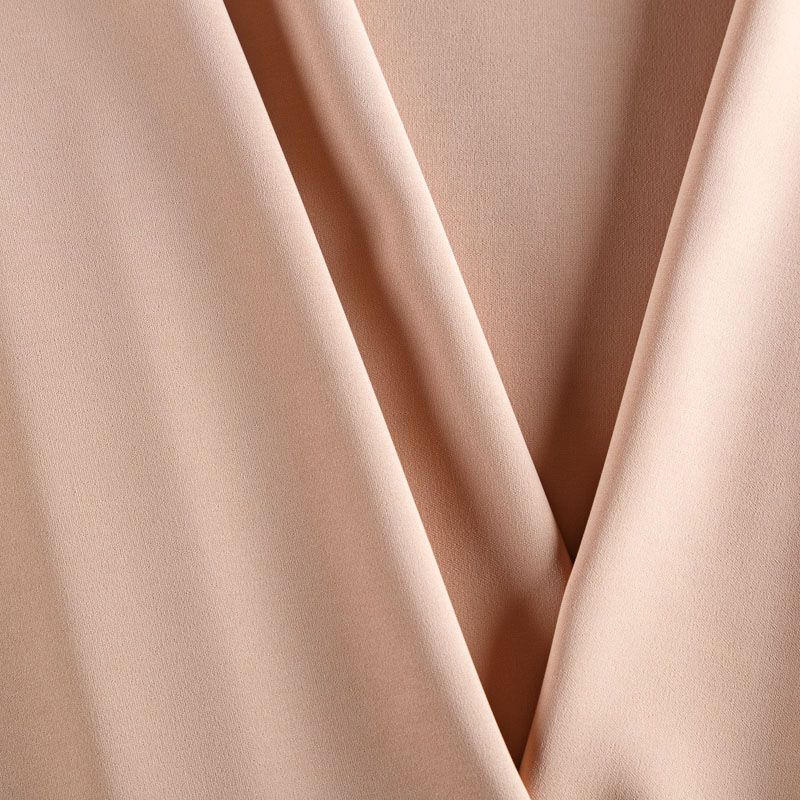 Плотная ткань с гладкокрашеной отделкой. Поверхность полотна матовая, упругая, эластичная, с характерной шероховатой мелкозернистой фактурой. Ткань практически не мнется, отлично сохраняет форму изделия, достаточно мягкая и пластичная. Подойдет для пошива платья, свободных брюк, топа, лонгслива, комбинезона.
