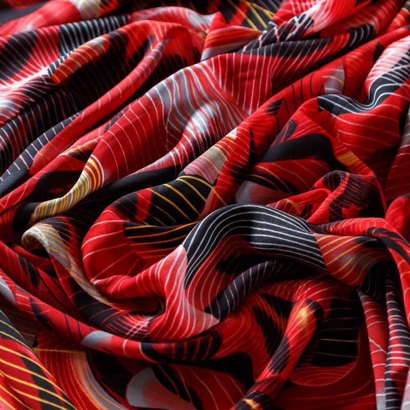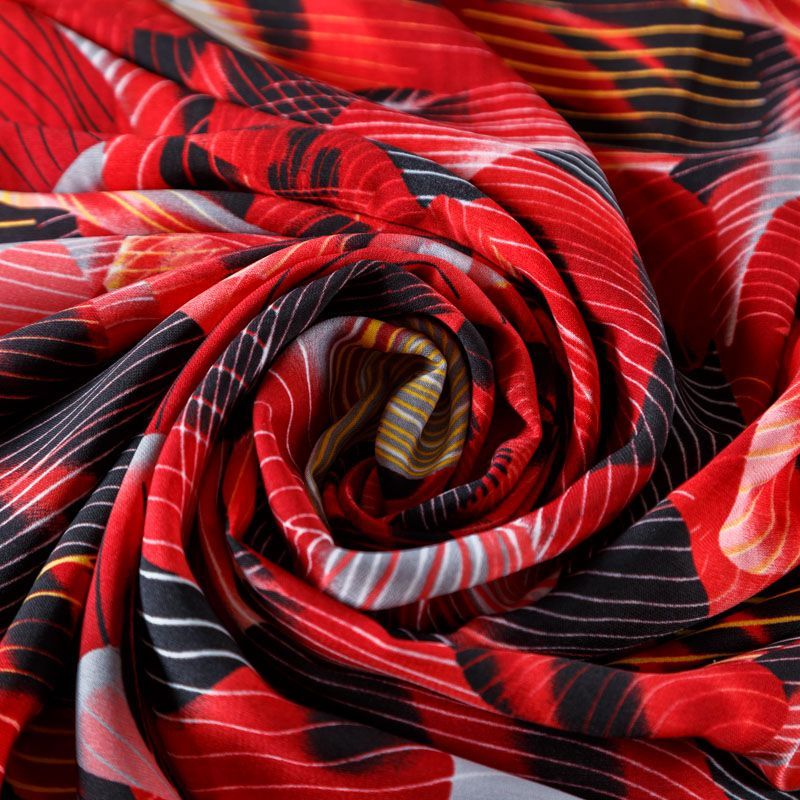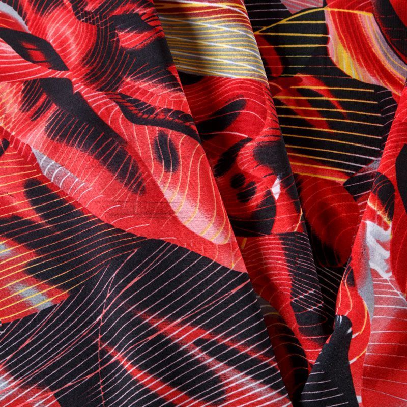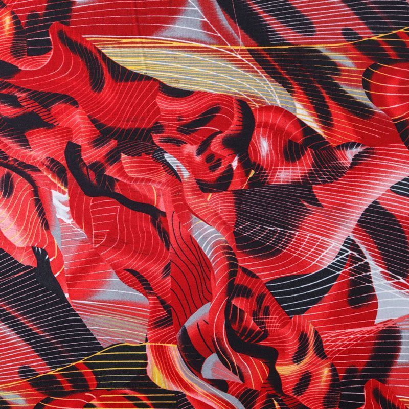 Плательный креп с абстрактным принтом. Ткань средней плотности, не толстая, пластичная, поверхность полотна матовая, с характерной мелкозернистой фактурой, прочная, практически не мнется, хорошо драпируется. Превосходно подойдет для пошива стильного костюма, юбки, платья, комбинезона, топа, брюк.