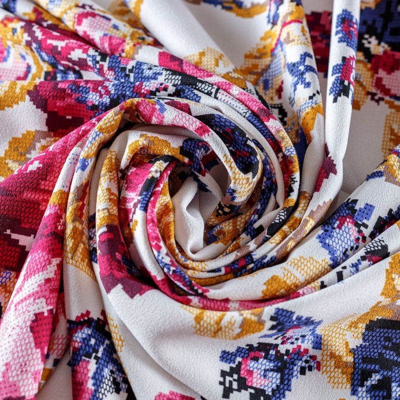 Плательный креп средней плотности, ткань не толстая, пластичная, поверхность полотна матовая, с характерной мелкозернистой фактурой, прочная, практически не мнется, хорошо драпируется, тянется за счет эластана в составе. Превосходно подойдет для пошива свободного костюма, юбки, платья, туники, лонгслива, комбинезона, топа, брюк.