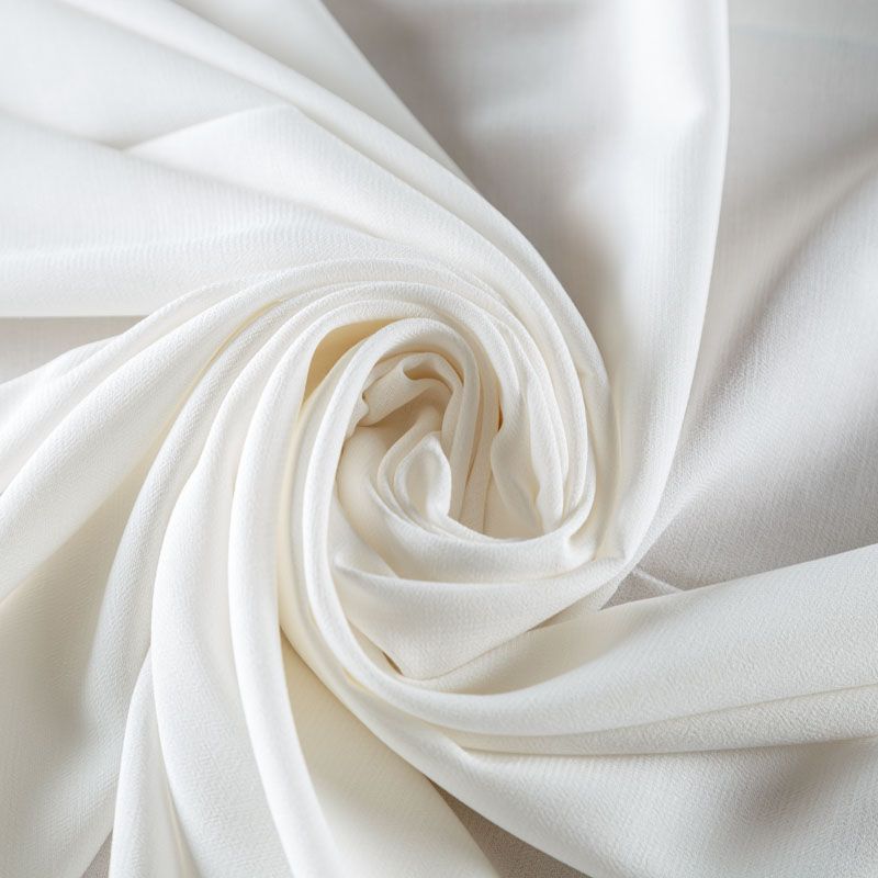 Итальянский вискозный плательный креп с эластаном в молочном оттенке. Ткань тонкая, легкая, отлично драпируется, идеальна для летнего сарафана, платья, туники, блузки, юбки, ниспадающих, свободных, воланящих, летящих, многослойных фасонов, а также в качестве подклада под кружево.