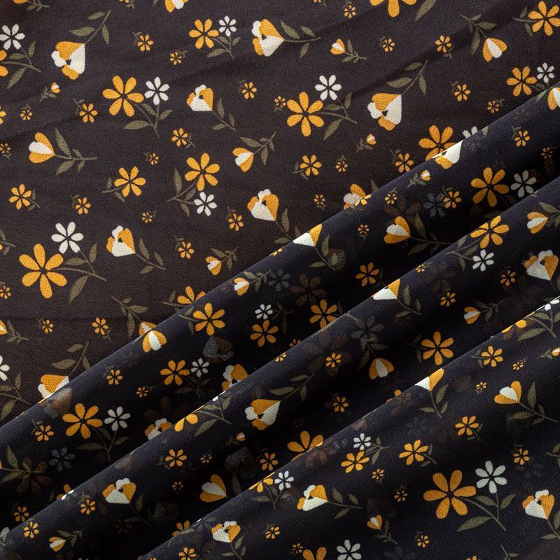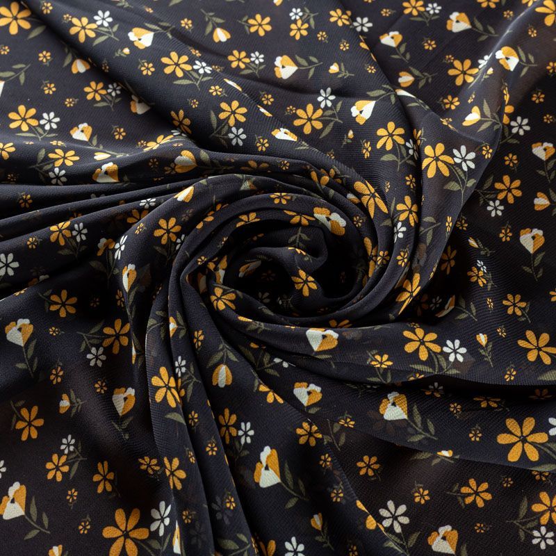 Креп-шифон 027-01273 черный принтованный