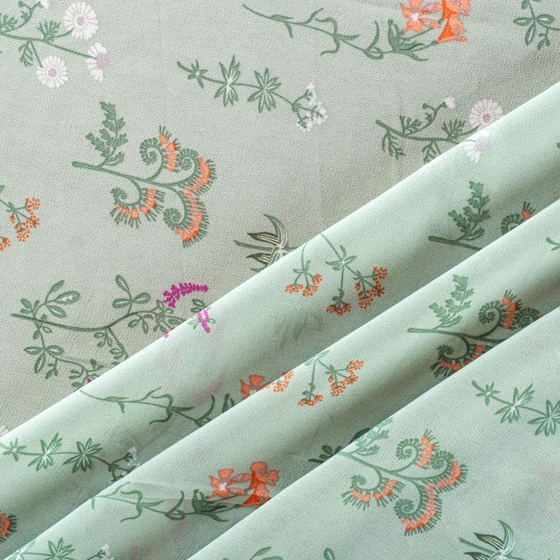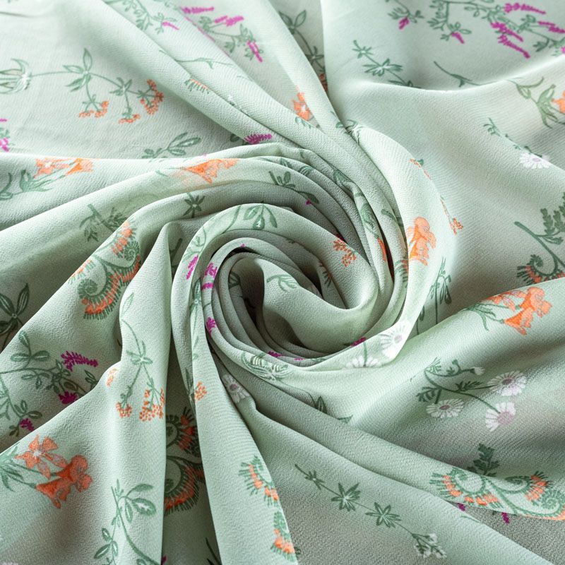 Креп-шифон 027-01275 лавровый зеленый принтованный в Великих Луках