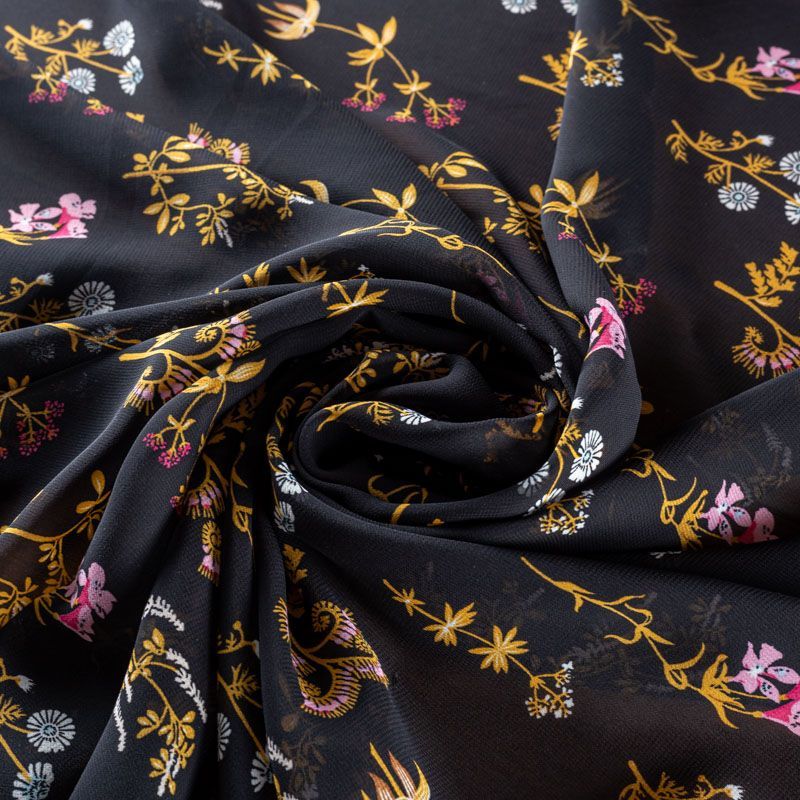 Креп-шифон 027-01280 черный принтованный в Великих Луках