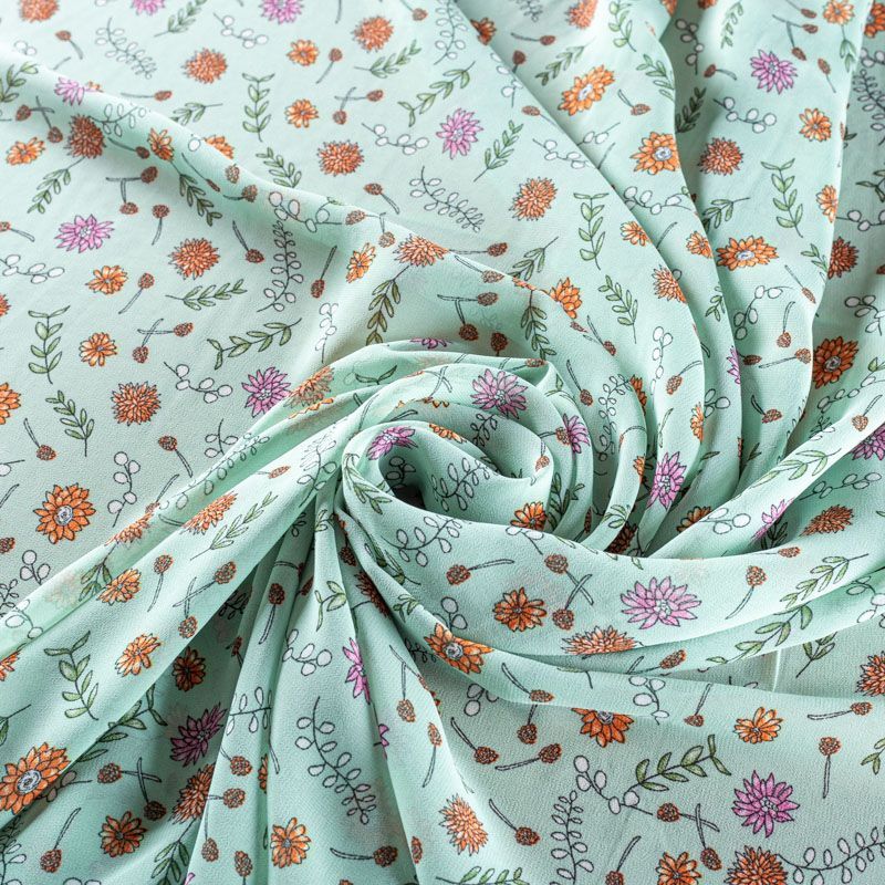 Креп-шифон 027-01285 мятно-зеленый принтованный в Великих Луках
