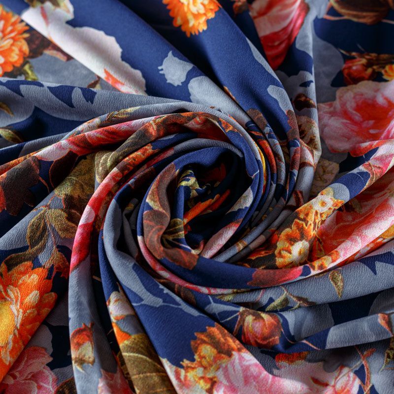 Креп-шифон легкий, воздушный, мягкий и нежный, прекрасно драпируется, тянется, приятен к телу, полупрозрачный, может потребоваться подклад. Поверхность шероховатая, матовая, без блеска. Тянется за счет эластана в составе. Идеален для нежных платьев летящих силуэтов, топов, туник, блузок, юбок с роскошными драпировками и воланами.