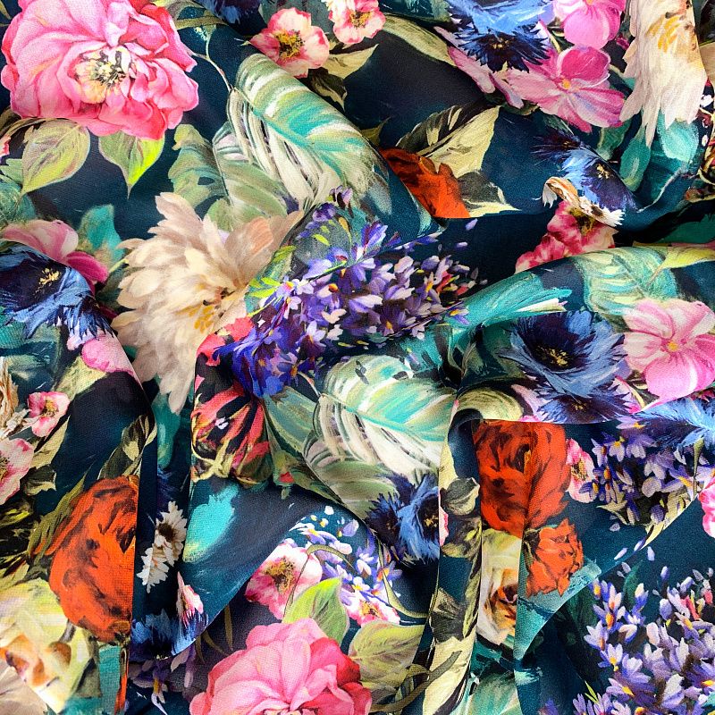 Креп-шифон натуральный К32-230 сине-зеленый принтованный в Великих Луках