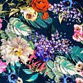 Креп-шифон натуральный К32-230 сине-зеленый принтованный