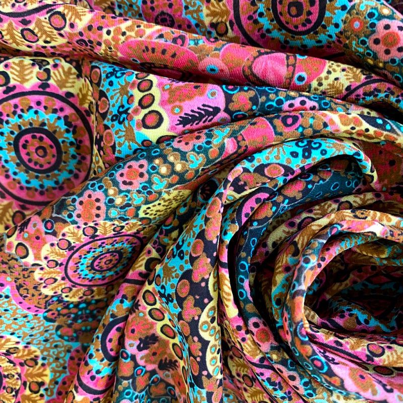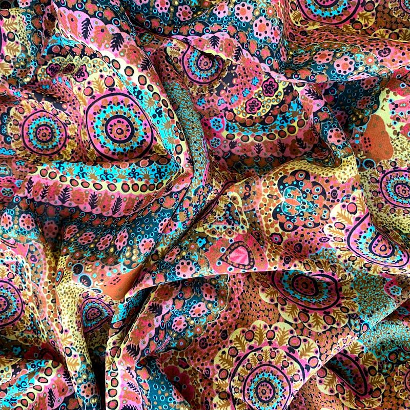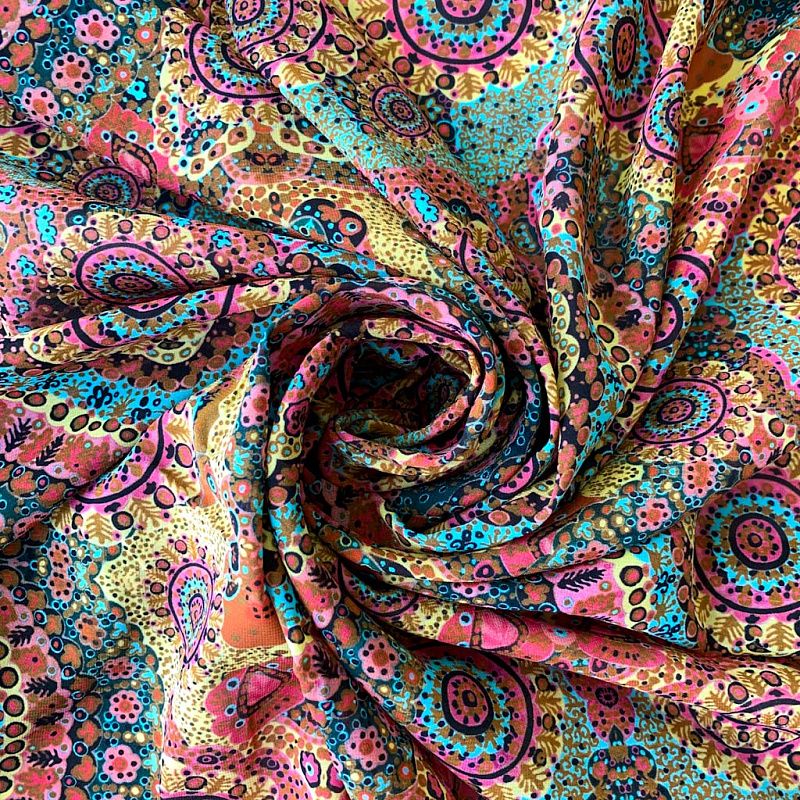 Креп-шифон натуральный К32-234 бордово-желтый принтованный в Великих Луках