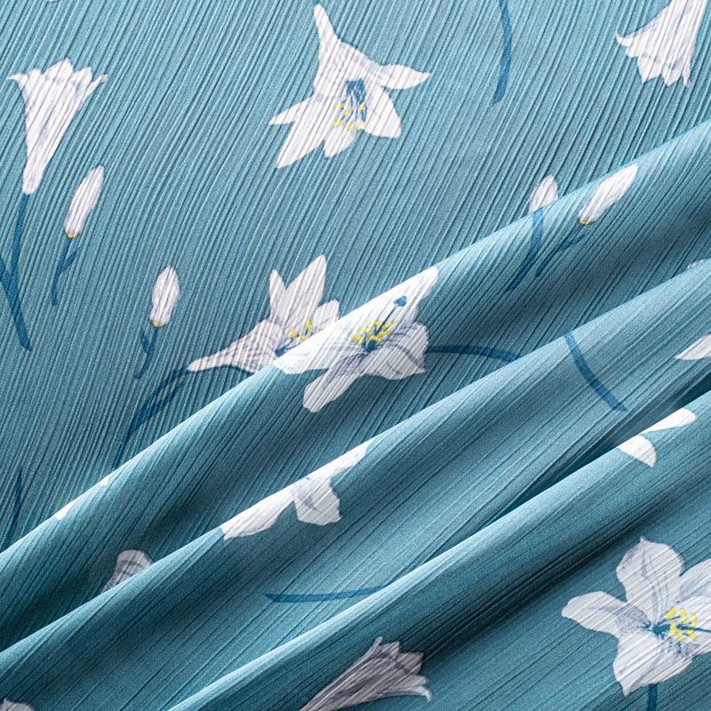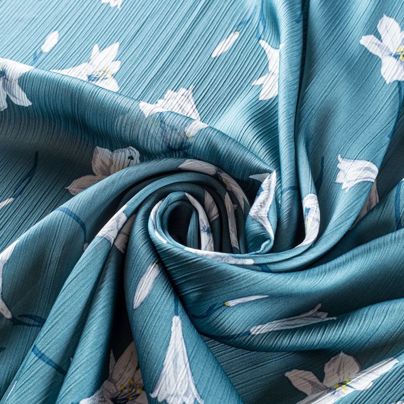 Легкий, воздушный, мягкий креп-шифон с эффектом "крэш", прекрасно драпируется, приятен к телу, не просвечивает. Поверхность матовая, без блеска, фактурная. Идеален для нежных платьев летящих силуэтов, топов, туник, блузок, юбок с роскошными драпировками и воланами.