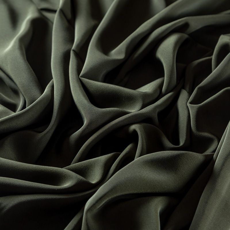 Крепдешин натуральный 028-09566 зеленый хаки однотонный