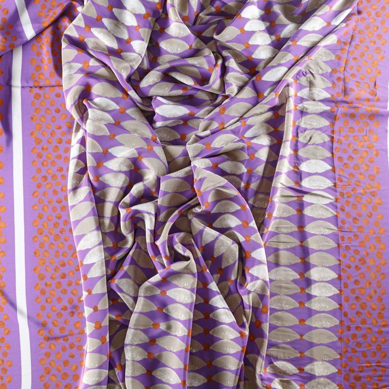 Крепдешин натуральный К01-377 лавандовый принтованный в Великих Луках
