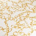Итальянский натуральный крепдешин в молочном оттенке с золотыми цепочками, тонкий, слегка прозрачный, отлично драпируется, легкий и струящийся. Идеально подойдет для пошива платьев и сарафанов расклешенных моделей, с воланами, летящих юбок, топов, блузки, юбки, широких брюк, костюма в пижамном стиле.