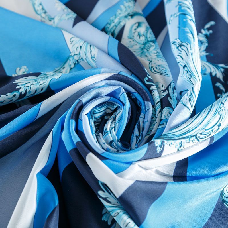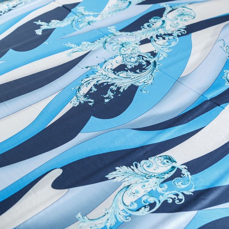 Крепдешин натуральный К01-762 серо-голубой принтованный
