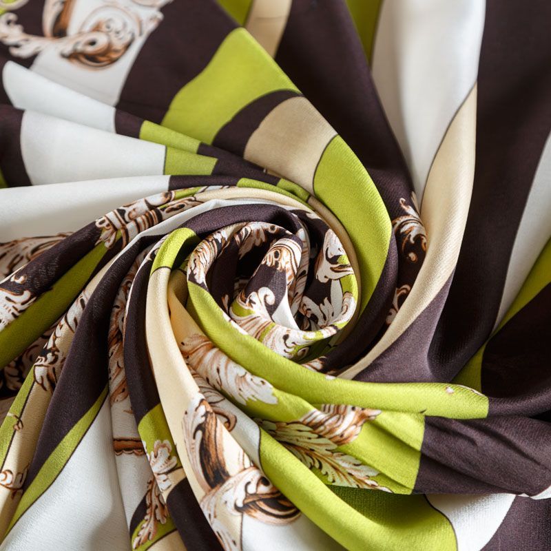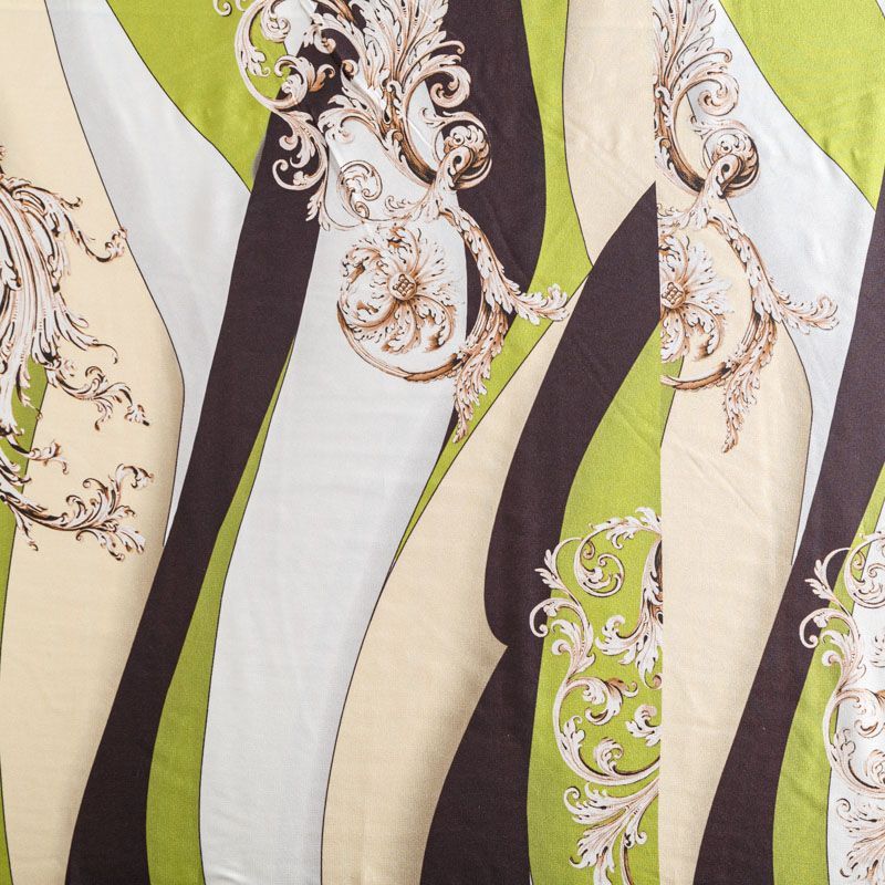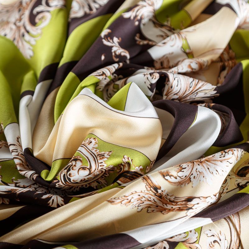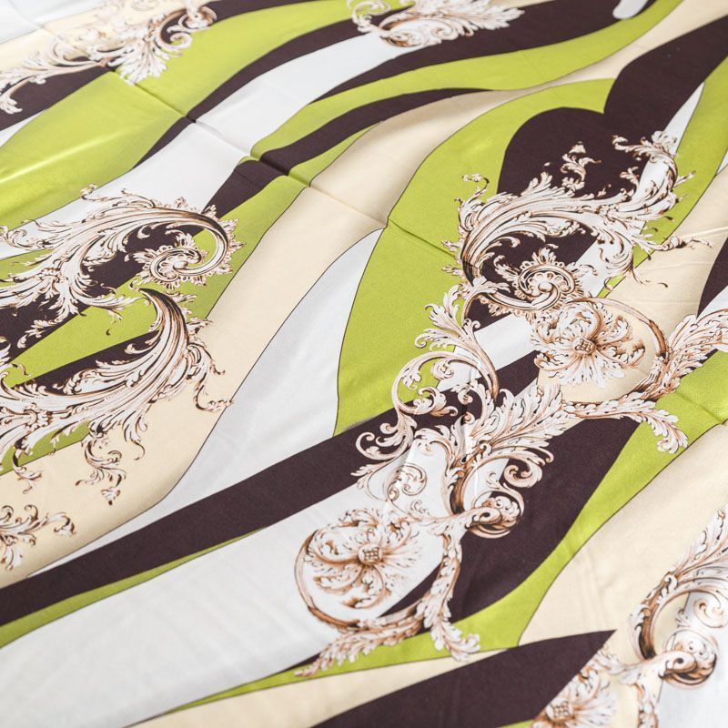 Крепдешин натуральный К01-763 молочно-лаймовый принтованный в Великих Луках
