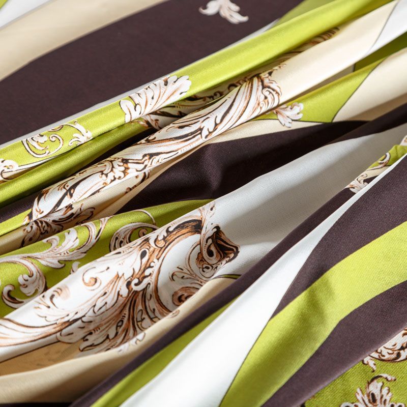 Итальянский натуральный крепдешин с абстрактным принтом, рисунок расположен по ширине ткани, от кромки до кромки. Тонкий, слегка прозрачный, отлично драпируется, легкий и струящийся с креповой поверхностью. Идеально подойдет для пошива платьев и сарафанов расклешенных моделей, с воланами, летящих юбок, топов, блузки, костюма в пижамном стиле.