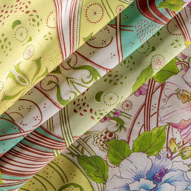 Крепдешин натуральный К06-0095 салатовый принтованный в Великих Луках
