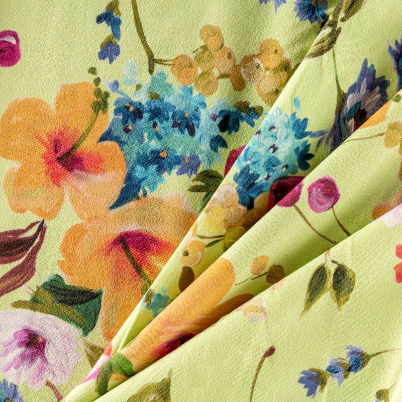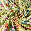 Крепдешин натуральный К06-277 салатовый принтованный