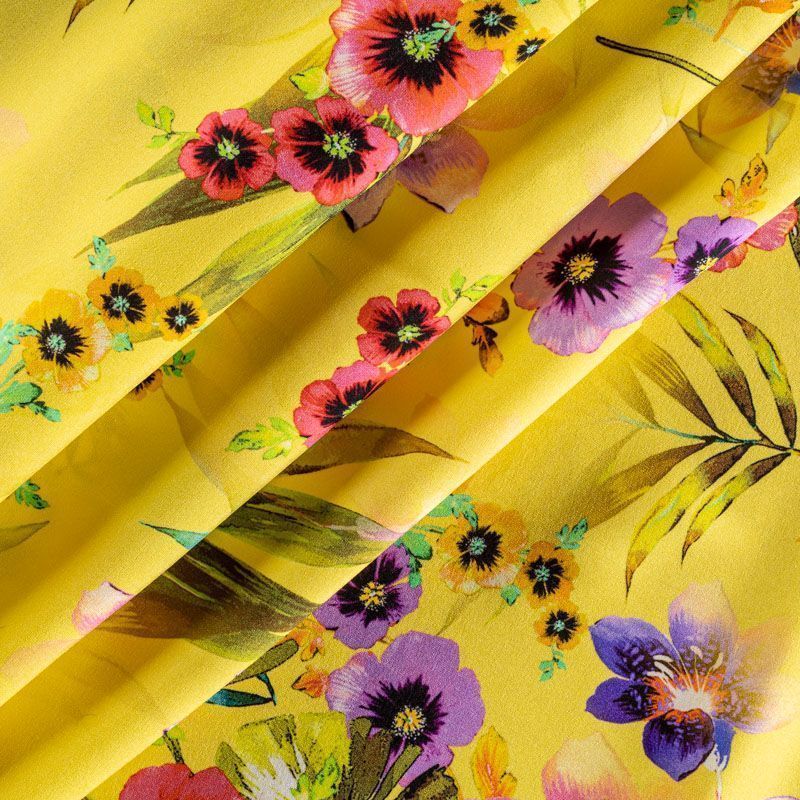 Крепдешин натуральный К13-878 желтый принтованный в Великих Луках