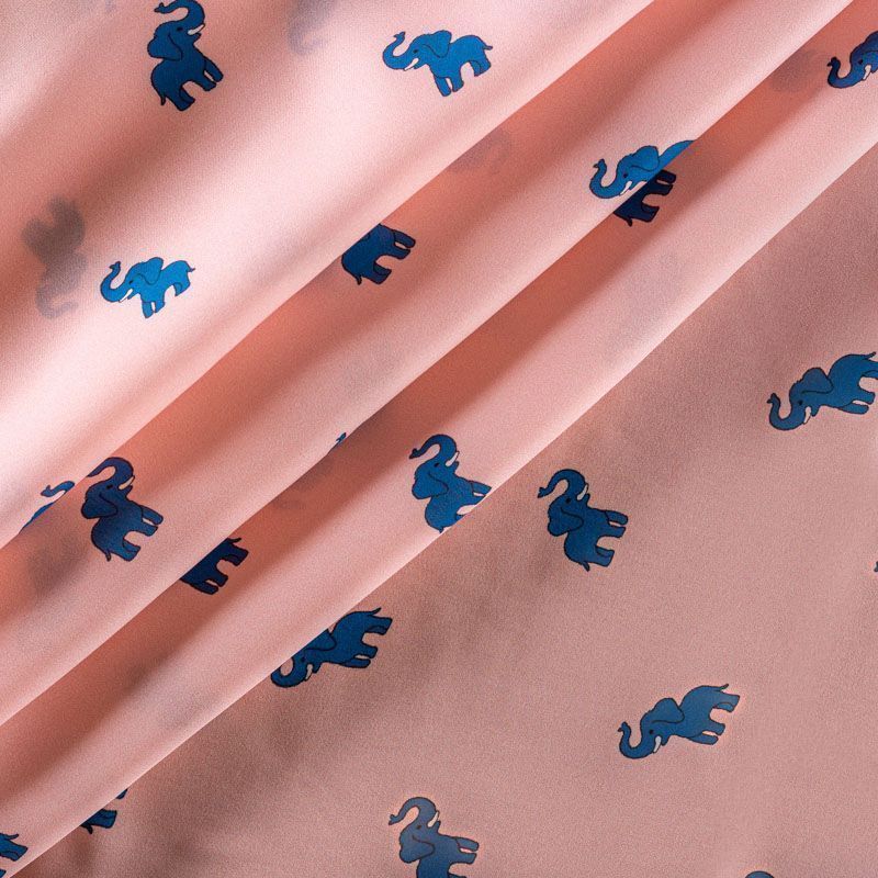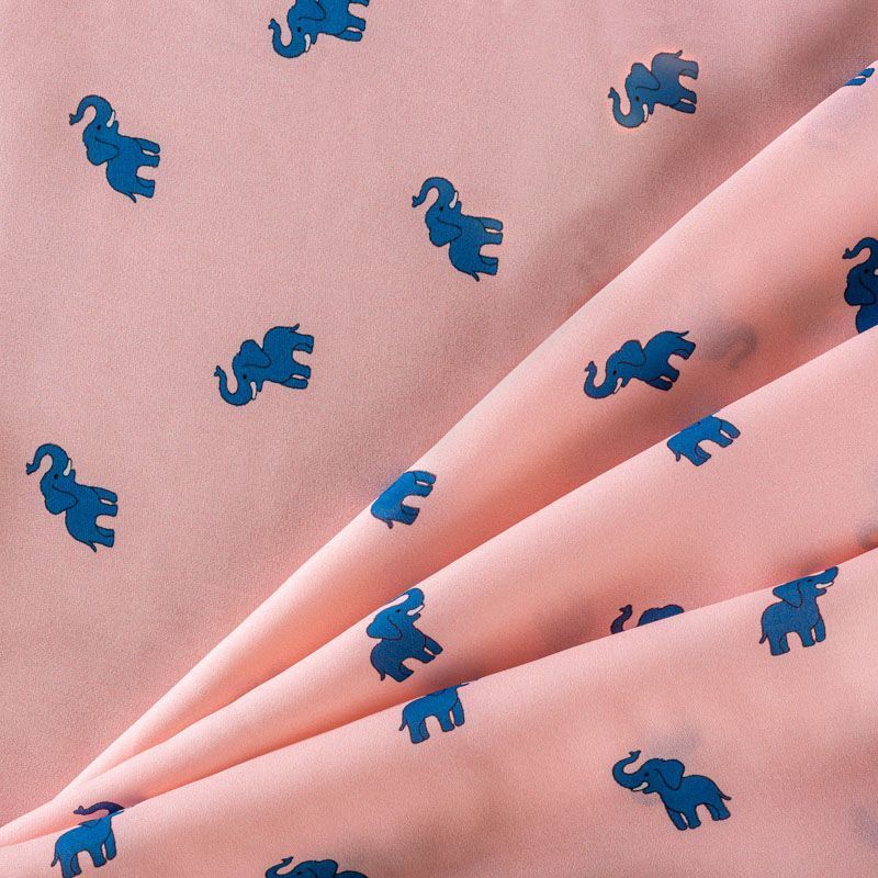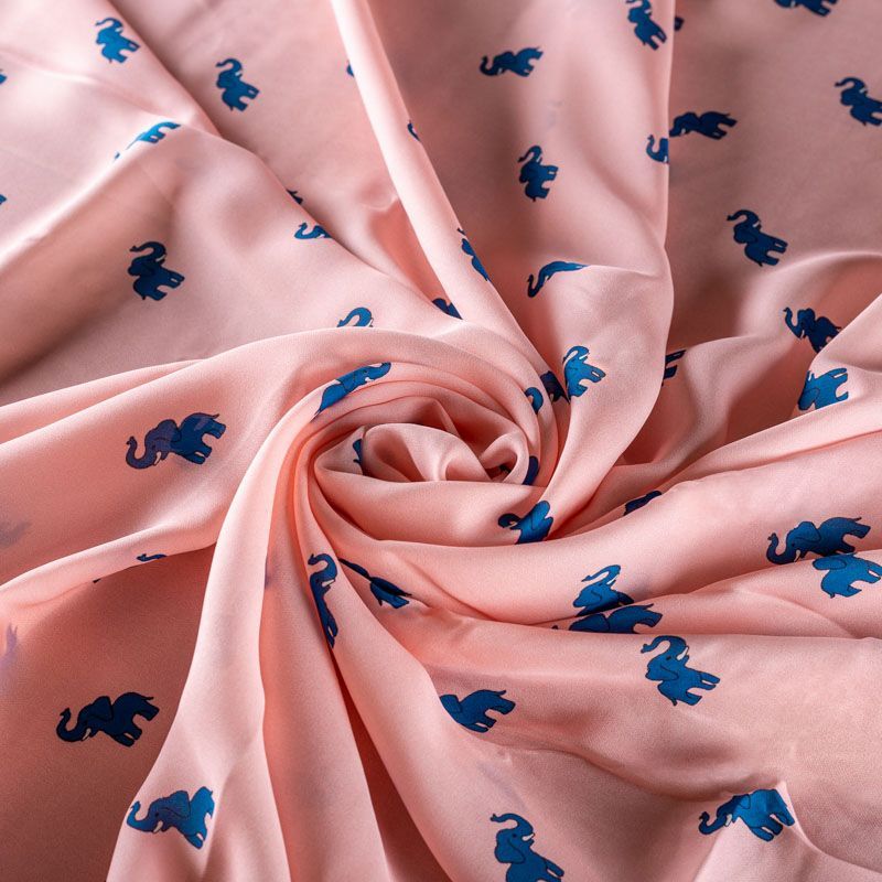 Крепдешин натуральный К14-056 персиково-розовый принтованный в Великих Луках