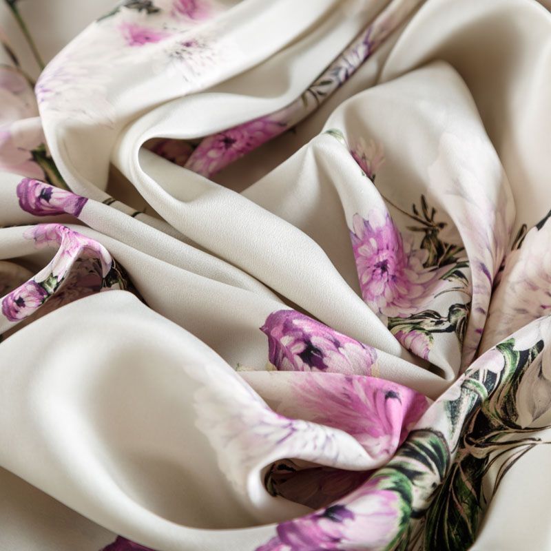 Итальянский натуральный крепдешин с цветочным принтом, тонкий, слегка прозрачный, отлично драпируется, легкий и струящийся с креповой поверхностью. Идеально подойдет для пошива платьев и сарафанов расклешенных моделей, с воланами, летящих юбок, топов, блузки, костюма в пижамном стиле.