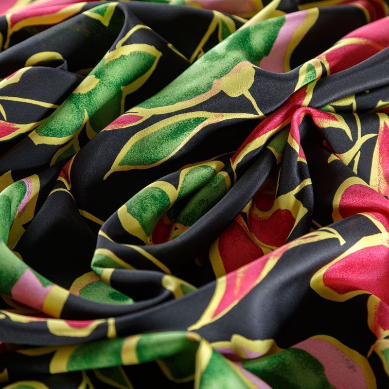 Крепдешин натуральный К18-187 черный принтованный в Великих Луках