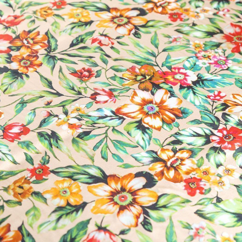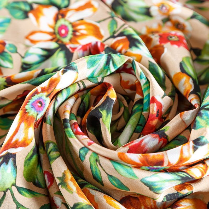 Крепдешин натуральный К27-037 бежевый принтованный в Великих Луках