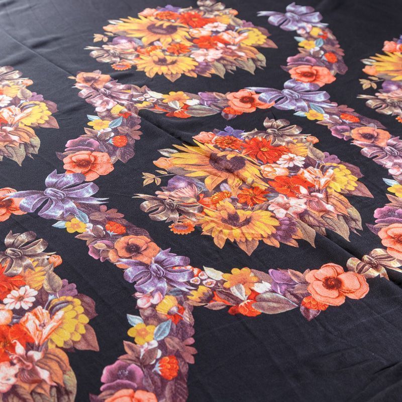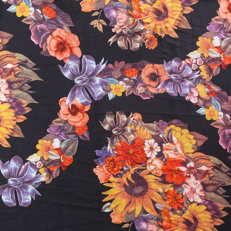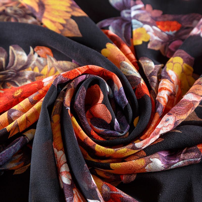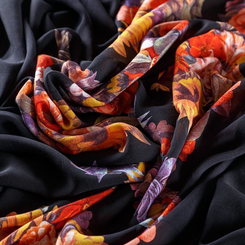 Крепдешин натуральный К29-785 черный принтованный в Великих Луках