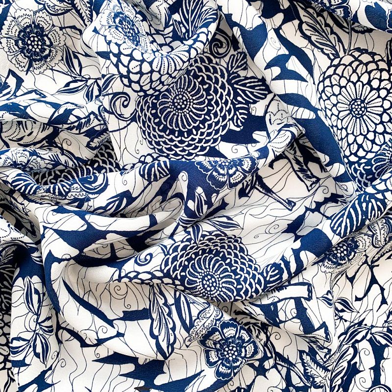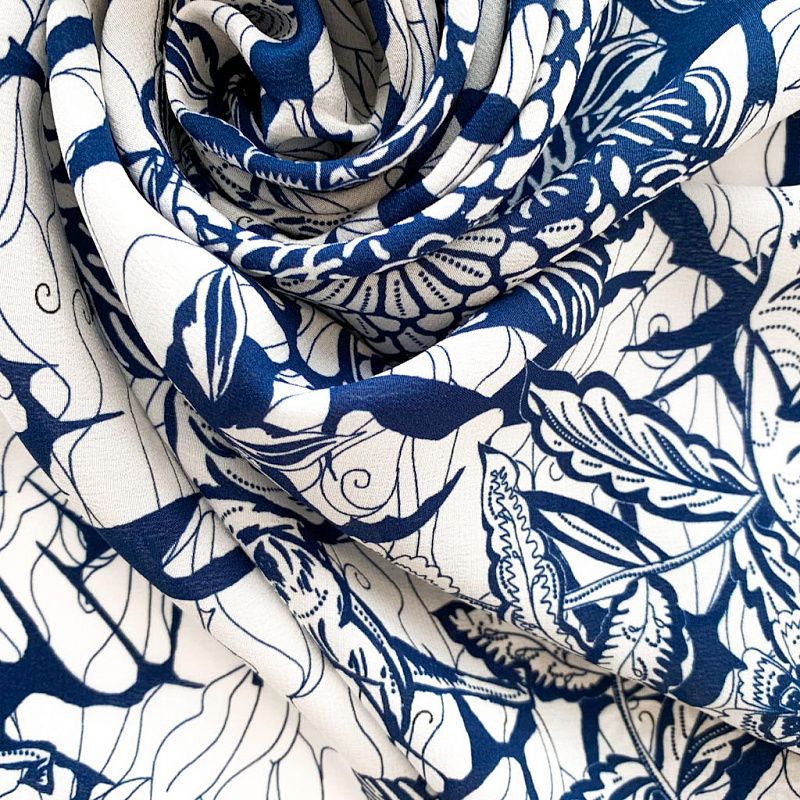 Крепдешин натуральный К32-233 молочный принтованный в Великих Луках