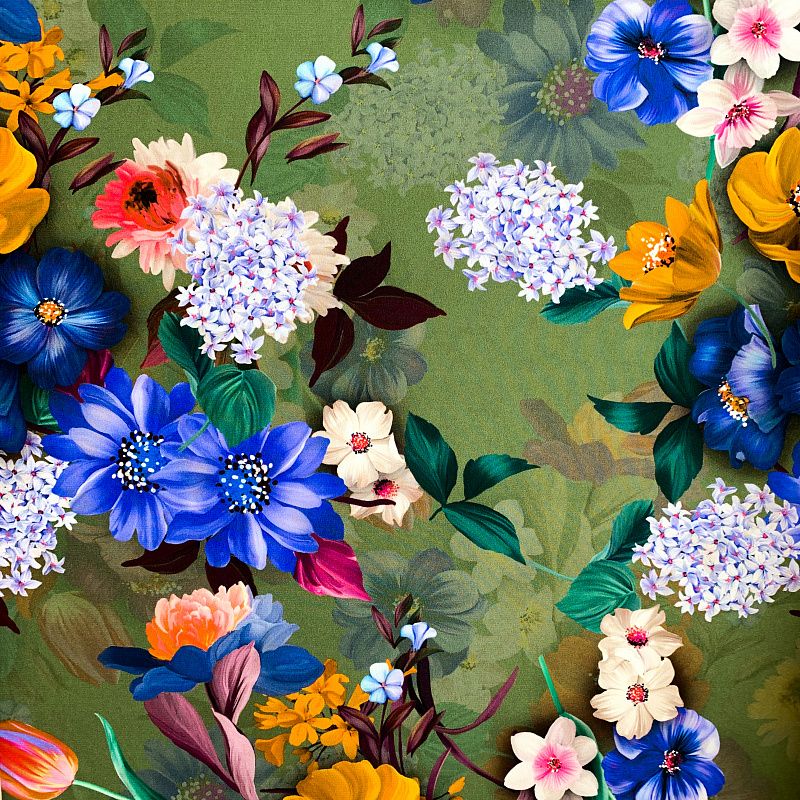 Крепдешин натуральный К32-240 травяная зелень принтованный