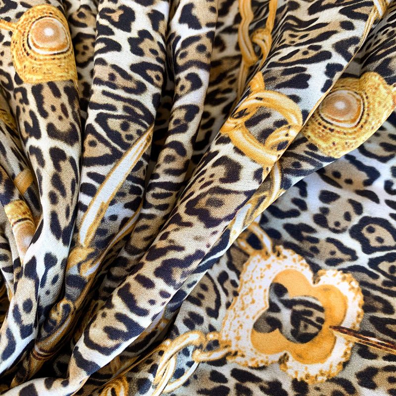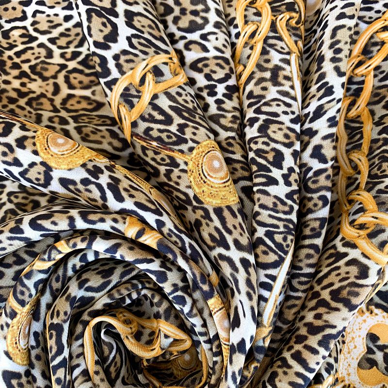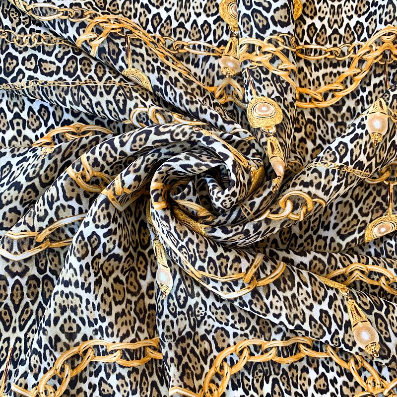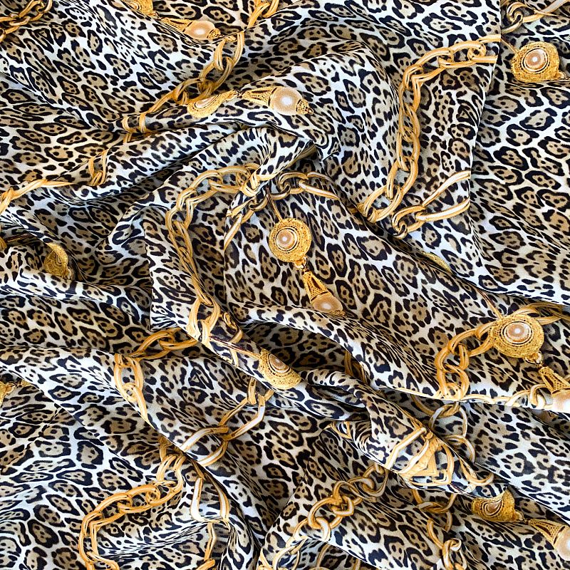 Крепдешин натуральный К32-243 бежево-серый принтованный в Великих Луках