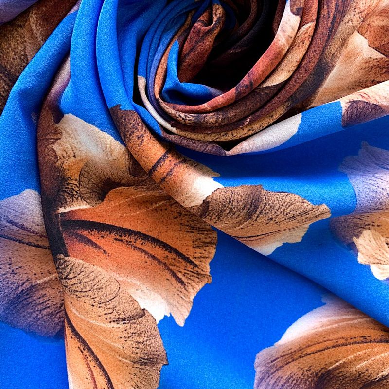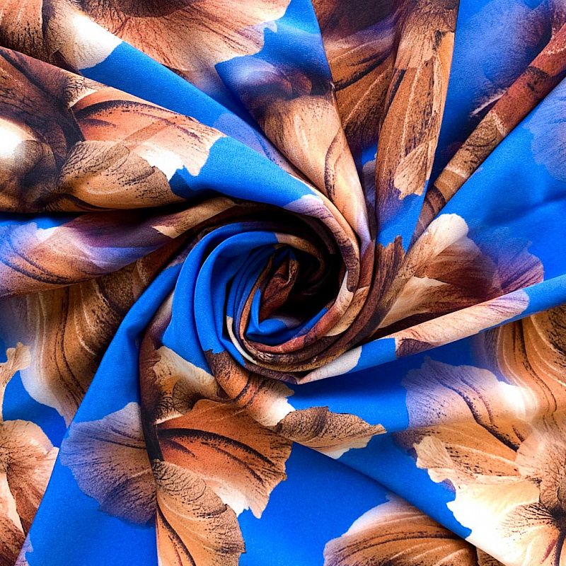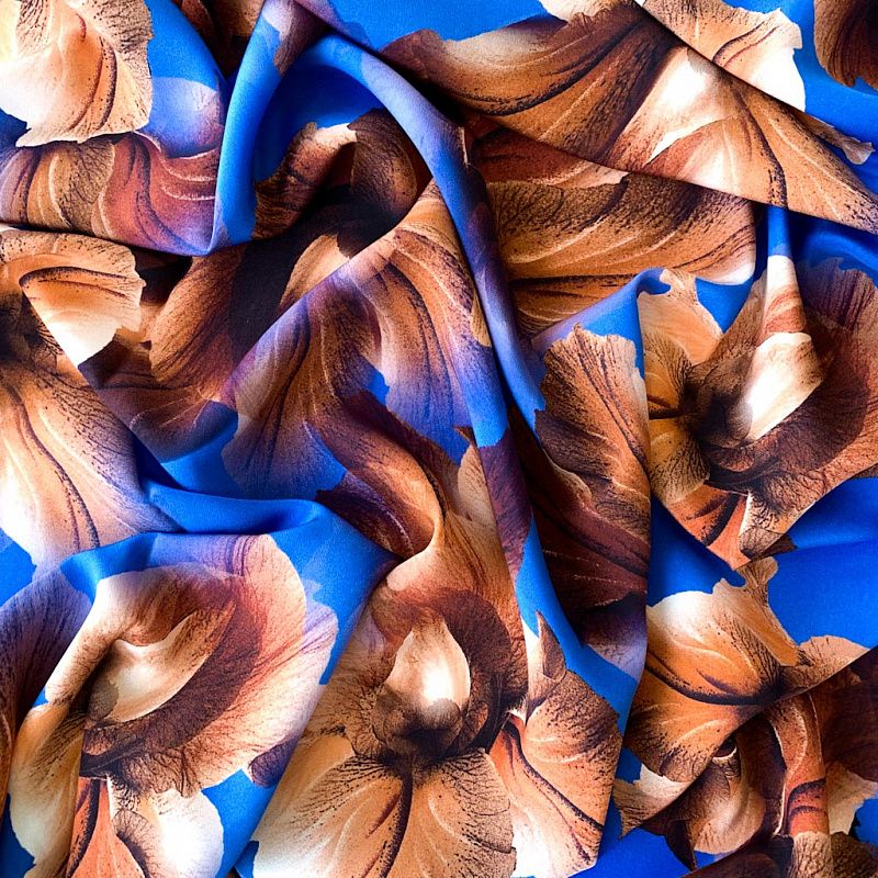 Крепдешин натуральный К32-373 лазурно-синий принтованный в Великих Луках