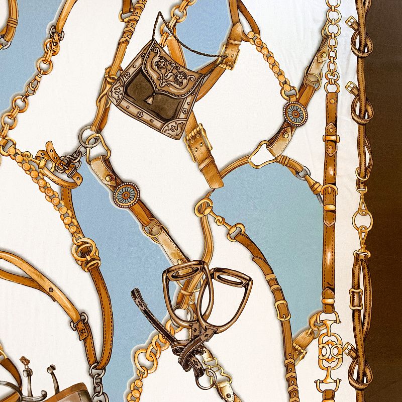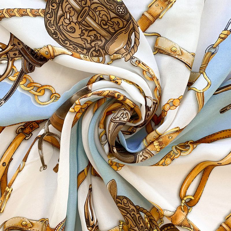 Крепдешин натуральный К32-381 молочно-голубой принтованный в Великих Луках