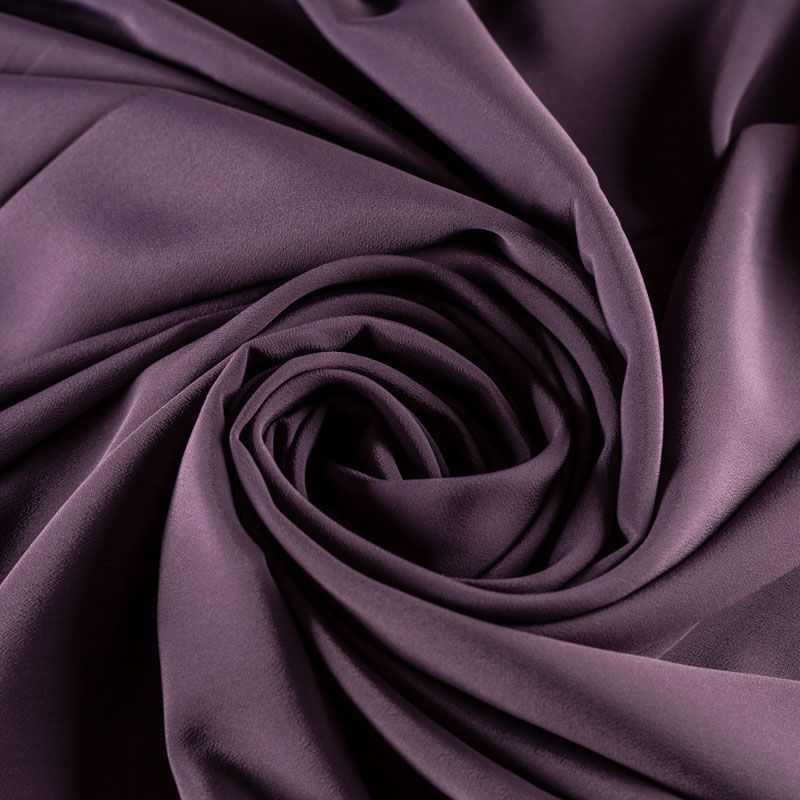 Шелковый крепдешин баклажанового цвета, тонкий, легкий, фактурный, приятный на ощупь. Ткань слегка просвечивает, можно использовать подклад. Прекрасно будет смотреться в платье, юбке, тунике, рубашке или блузке.