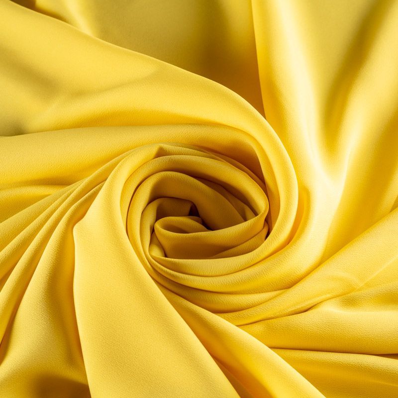 Шелковый крепдешин канареечного желтого цвета, тонкий, легкий, фактурный, приятный на ощупь. Ткань слегка просвечивает, можно использовать подклад. Прекрасно будет смотреться в платье, юбке, тунике, рубашке или блузке.