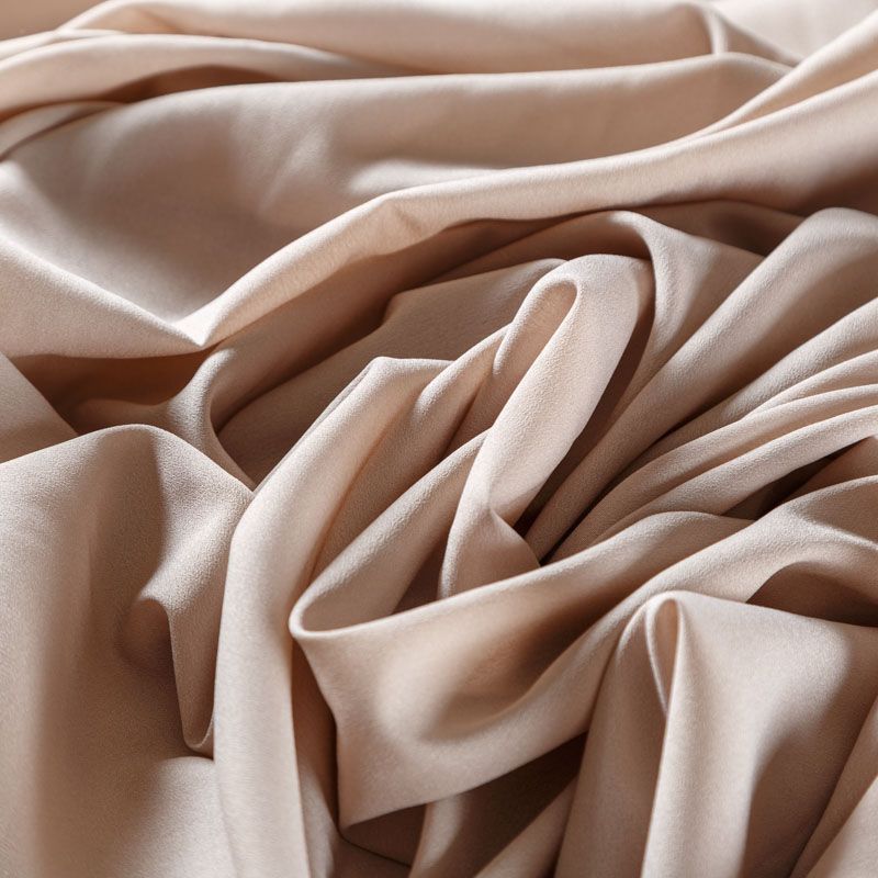 Крепдешин холодного бежевого оттенка, тонкий, легкий, фактурный, приятный на ощупь. Очень пластичный, тянется за счет эластана в составе, прекрасно драпируется и струится. Ткань слегка просвечивает, можно использовать подклад. Идеально будет смотреться в платье, юбке, тунике, рубашке или блузке.