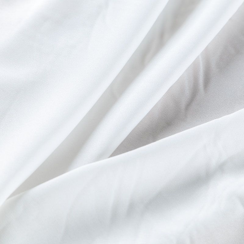 Крепдешин молочного оттенка, тонкий, легкий, фактурный, приятный на ощупь. Очень пластичный, тянется за счет эластана в составе, прекрасно драпируется и струится. Ткань слегка просвечивает, можно использовать подклад. Идеально будет смотреться в платье, юбке, тунике, рубашке или блузке.