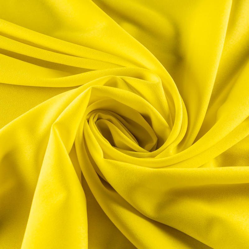 Крепдешин красивого яркого желтого оттенка, тонкий, легкий, фактурный, приятный на ощупь. Очень пластичный, прекрасно драпируется и струится. Ткань слегка просвечивает, можно использовать подклад. Идеально будет смотреться в платье, юбке, тунике, рубашке или блузке.