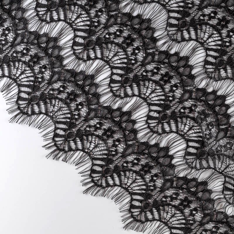 Ткань сквозной фактуры, она не имеет какой-либо тканной или сетчатой основы, а полностью соткана из нитей, создающий особенный рисунок, в целом, состоящий из небольшой ширины кружевных полосок, соединенных между собой тонкими нитями-ресничками, расположенными на одинаковом расстоянии между собой. Кружево можно использовать при пошиве самостоятельных изделий на подкладе (платья, топа, юбки, брюк), а также оно незаменимо в качестве отделки за счет фигурных фестонов.