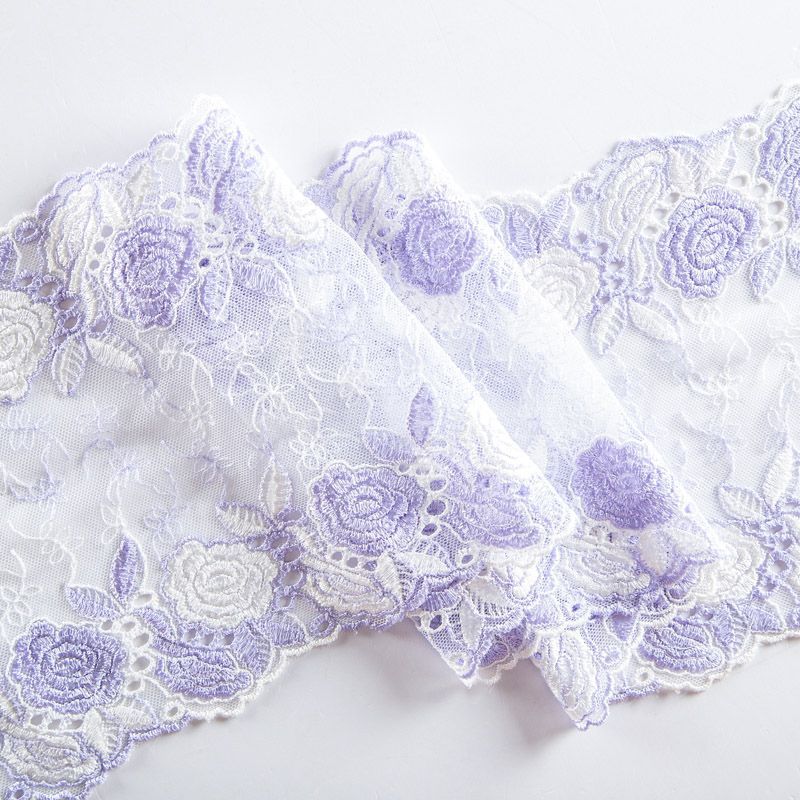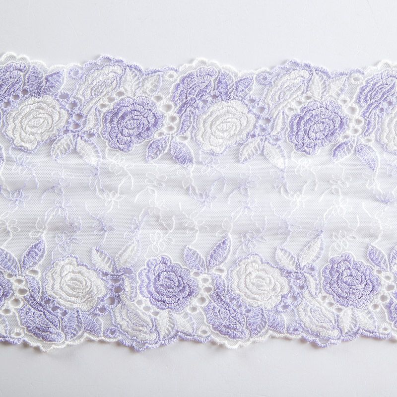 Кружево вышивка на сетке 180 мм Ф01-0010 бело-фиолетовый