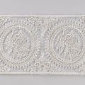Кружево на сетке представляет собой кружевное полотно, основа которого сетка или фатин. Применяется для декоративной отделки лёгкой женской одежды и домашнего текстиля. Края фигурные, обработаны с двух сторон.