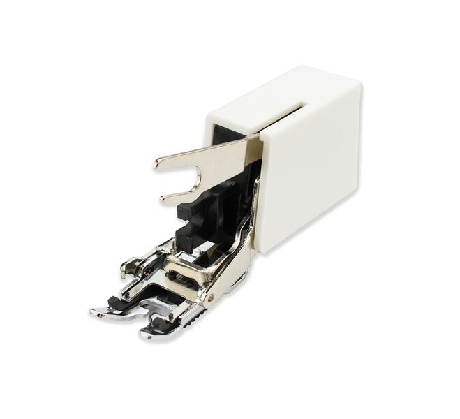 Шагающая лапка (верхний транспортер) используется для шитья виниловой ткани, синтетической кожи, шелка, атласа и других материалов, трудных для подачи обычным транспортером. Незаменима при шитье скользких тканей, а также многослойных изделий, предотвращает смещение слоев ткани относительно друг друга, позволяя шить без стягивания ткани. Совместимые швейные машины: ALFA: Next 20, 30, 40