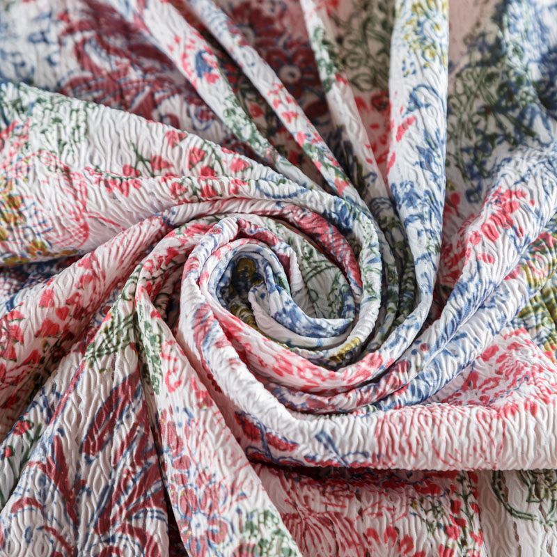 Итальяская качественная, красивая и приятная на ощупь лайкра молочного оттенка в фантазийным цветочным принтом. Поверхность ткани матовая, с жаккардовой фактурой и псевдоперфорацией.  Идеально облегает фигуру, тянется по двум направлениям, хорошо драпируется, отлично держит форму, устойчива к пилингу, долговечна и гигроскопична. Используется для пошива одежды для танцев, гимнастики, фигурного катания, для велоспорта, легкой атлетики и аэробики, фитнеса и других видов спорта, для купальников, женского белья, театральных, цирковых и эстрадных костюмов.
